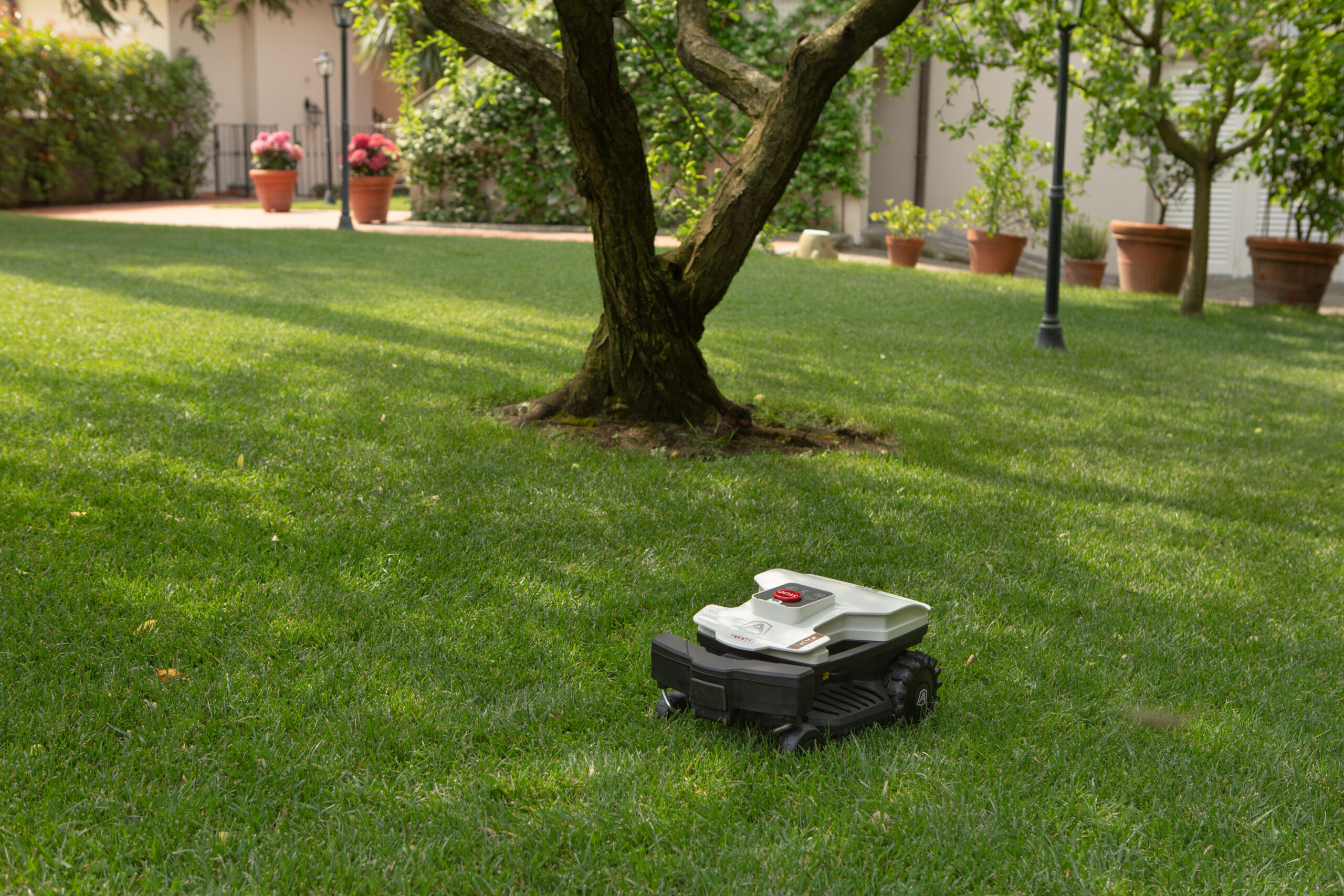 Planowanie pracy, czujniki bezpieczeństwa, deszczu i spadku sprawiają, że obsługa robota jest intuicyjna, a Ty masz pełną kontrolę nad swoim ogrodem – nawet będąc poza domem.